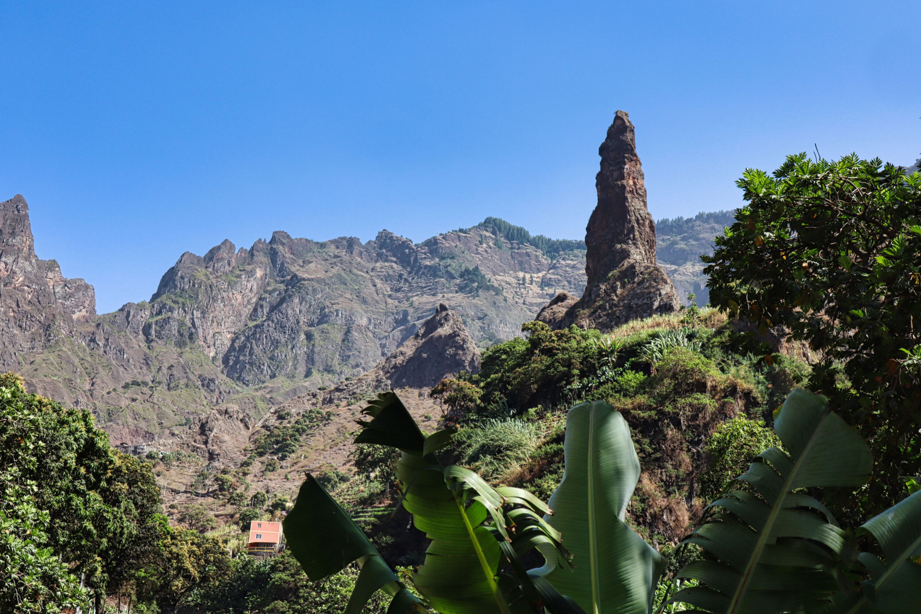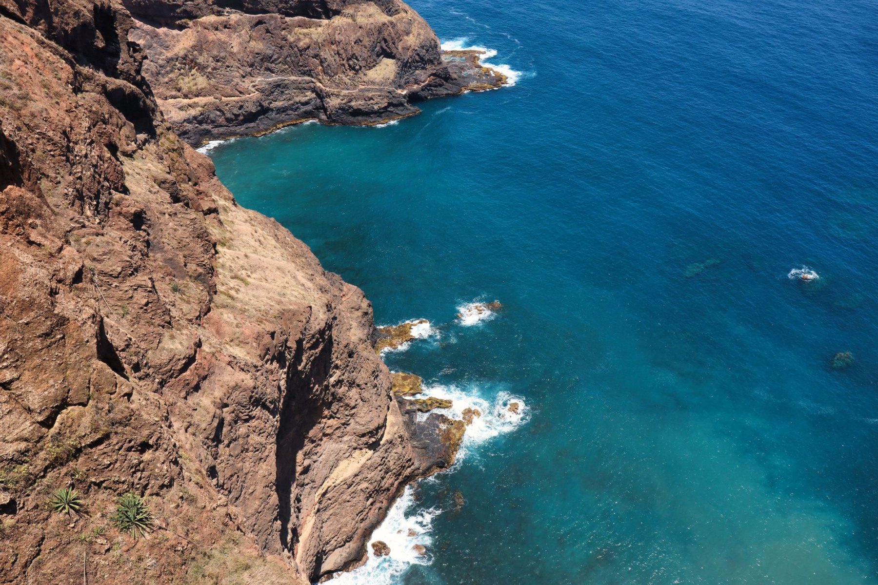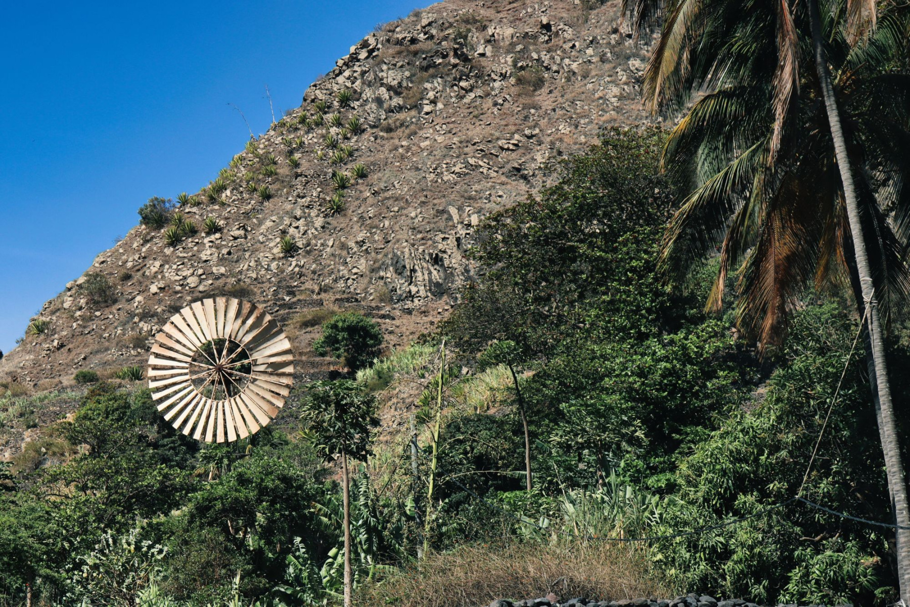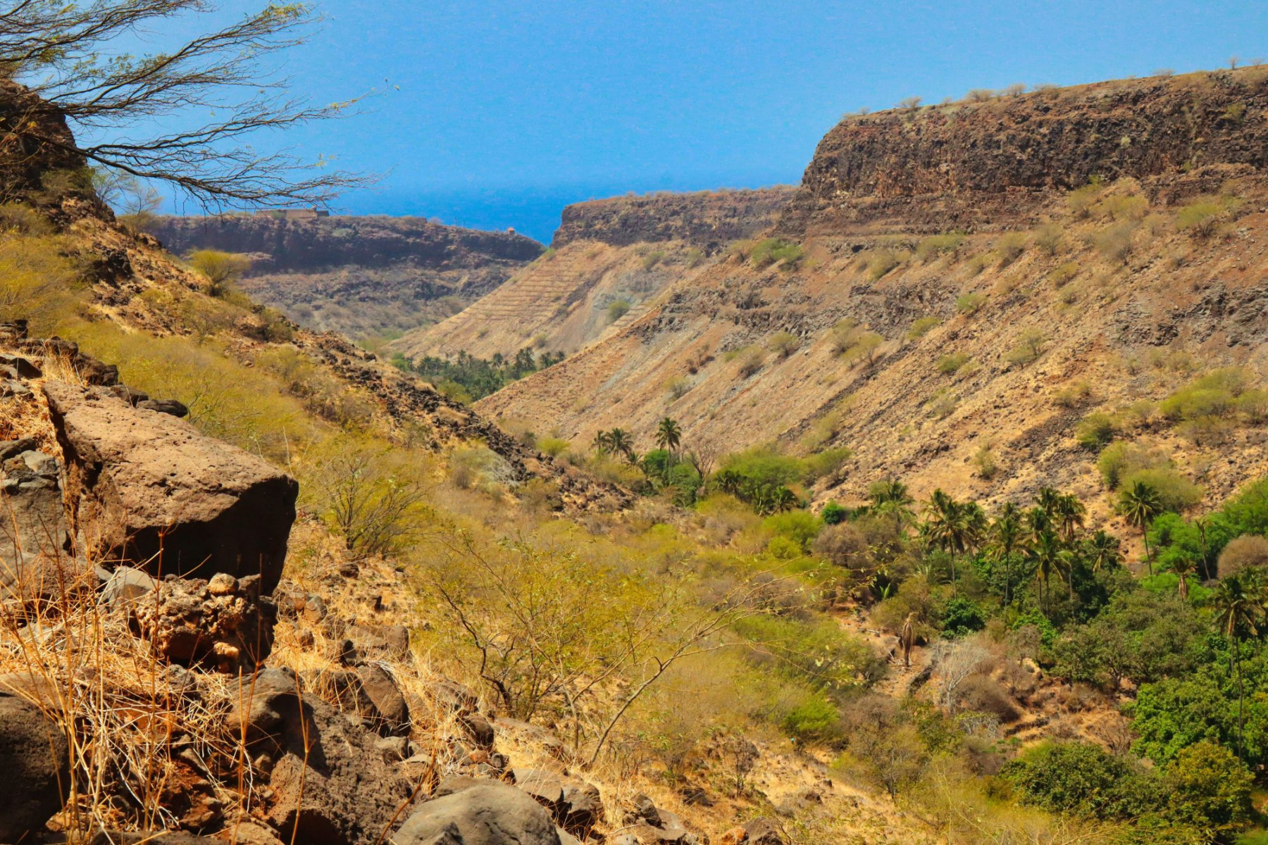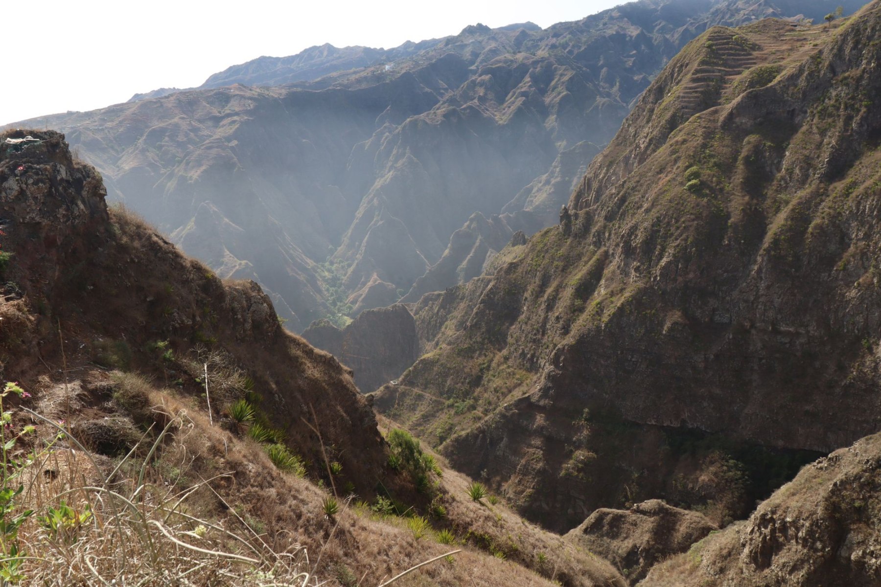 Da wir nicht nur der Kultur wegen, sondern auch um uns ein wenig die Beine zu vertreten hier heraus gefahren sind, folgen wir nun dem Vorschlag des Wanderführers und queren die staubtrockene Hochebene, einige Ziegengehöfte und den schmucklosen Ort Cabreiras um dann scharf links hinunter unvermittelt im tropischen Paradies zu landen. Hier wachsen Kokospalmen, Mangobäume, natürlich Bananen und andere exotische Früchte. Der Kontrast könnte stärker nicht sein.