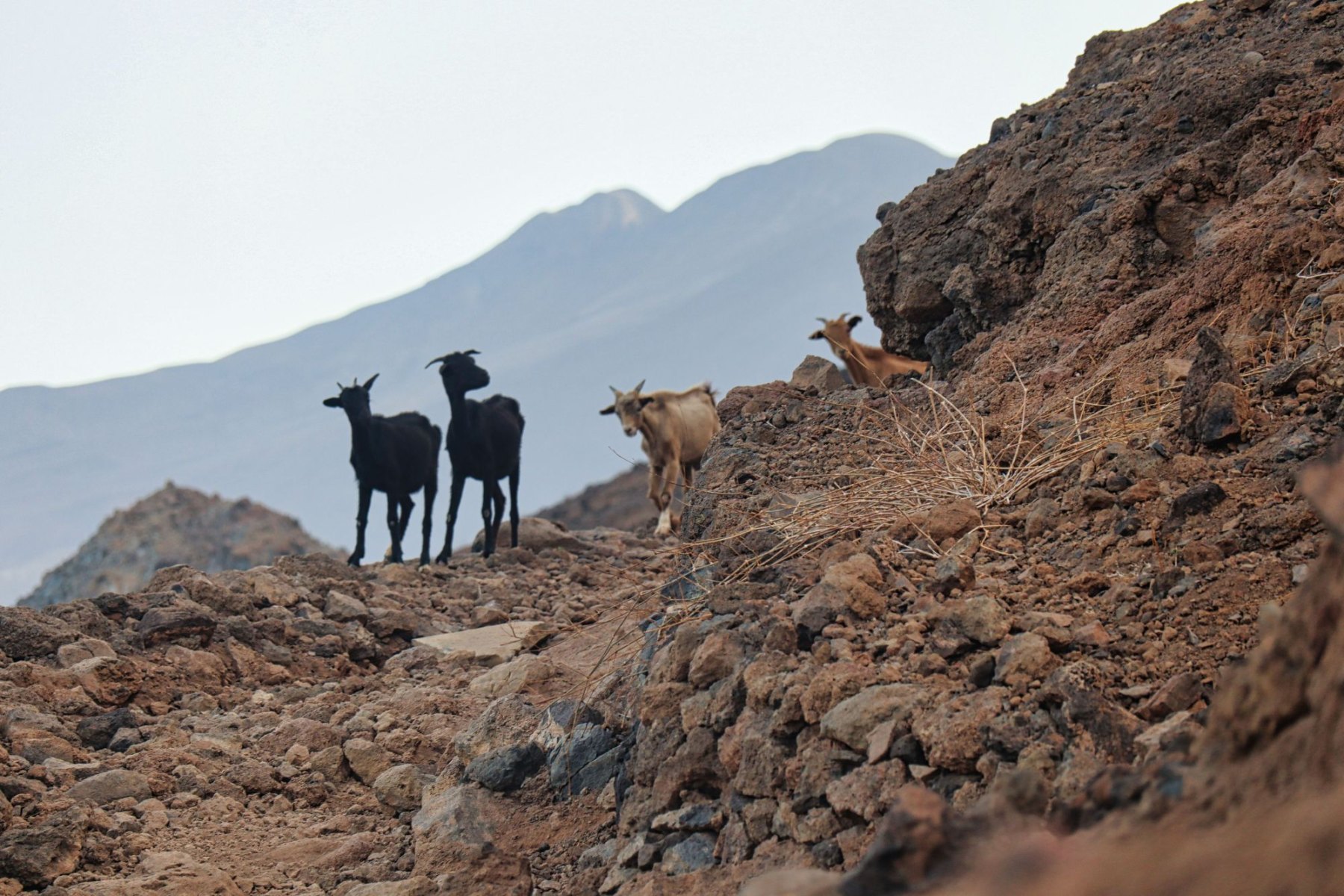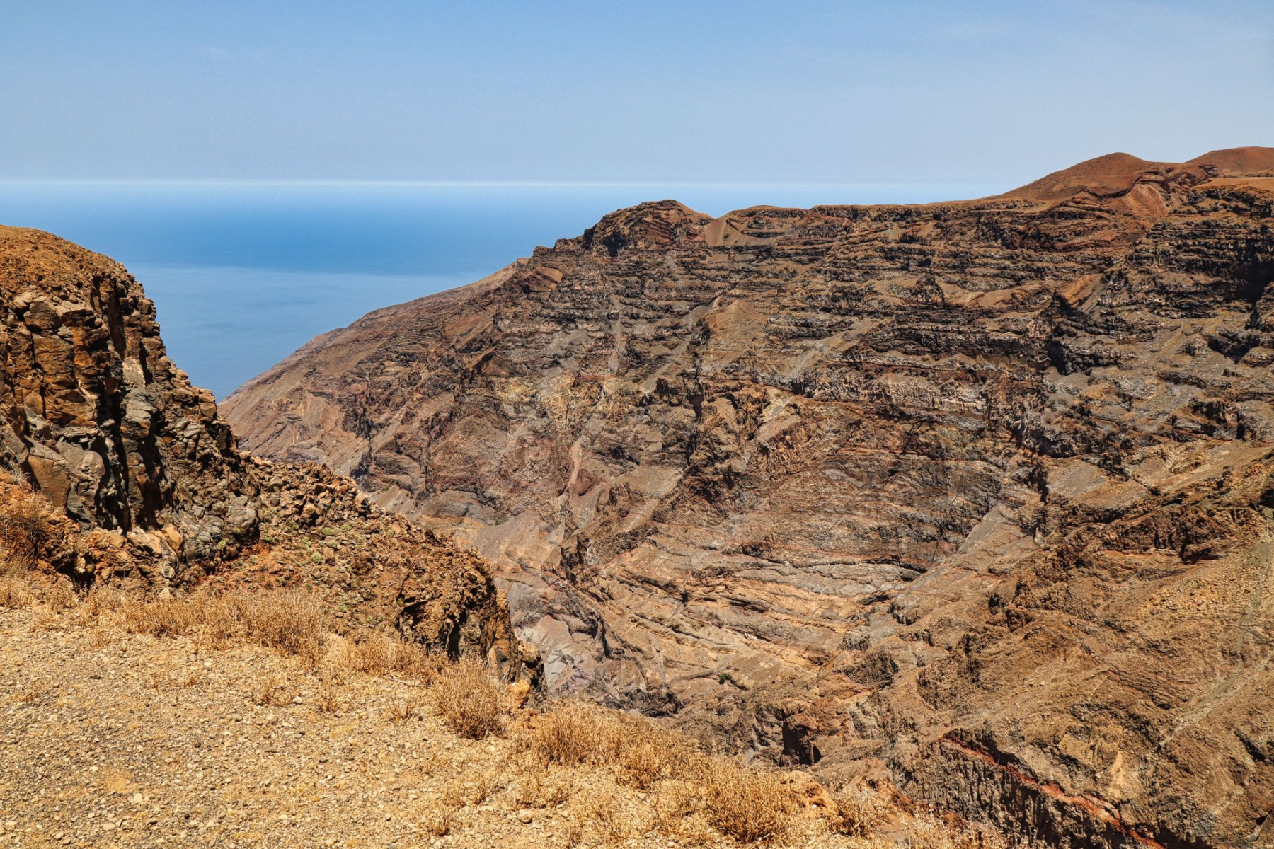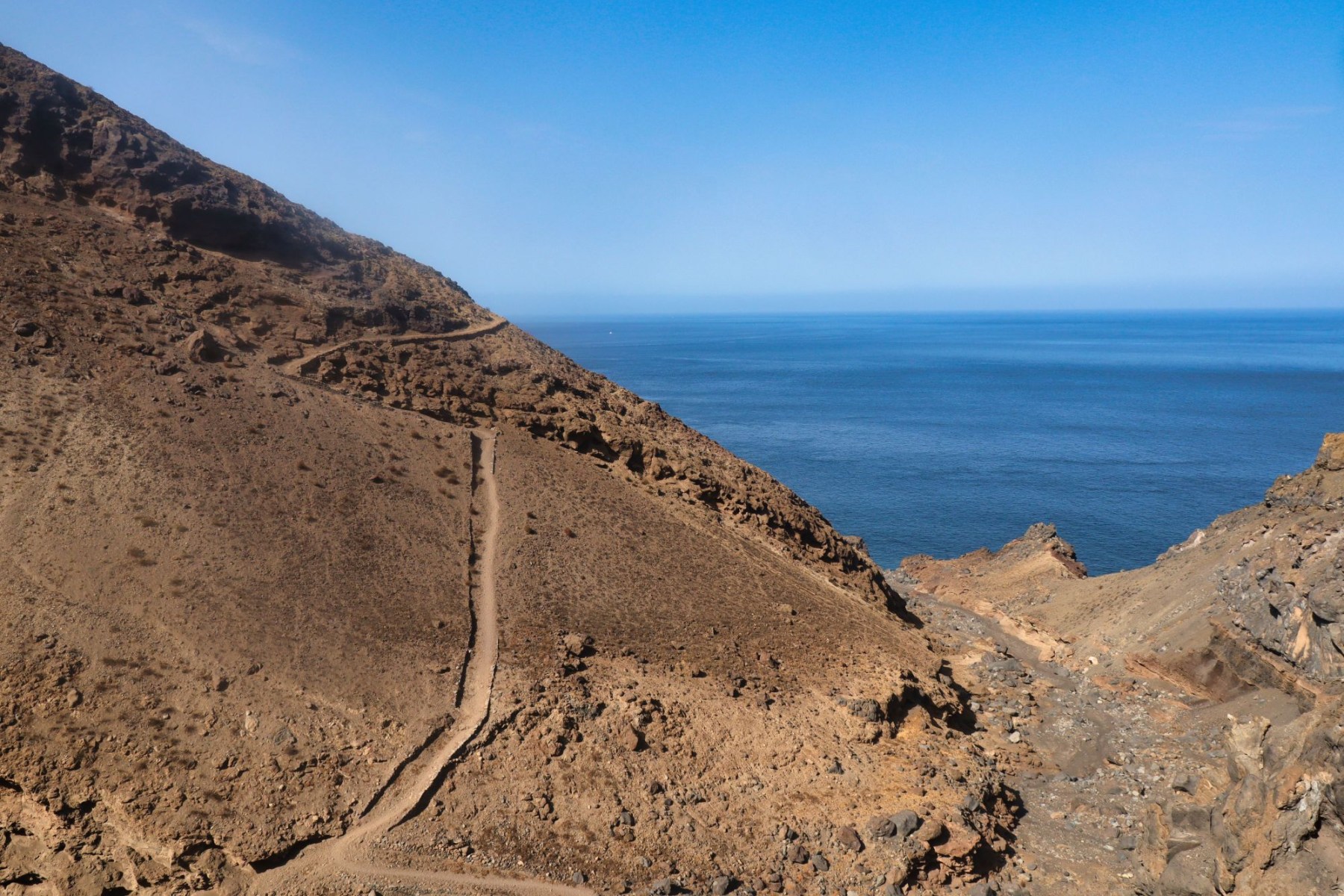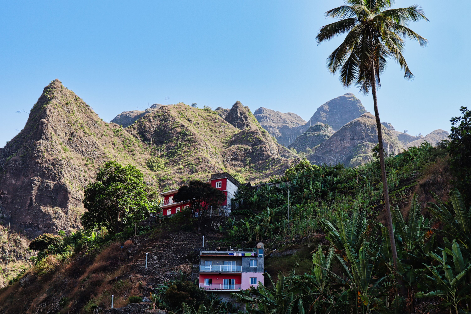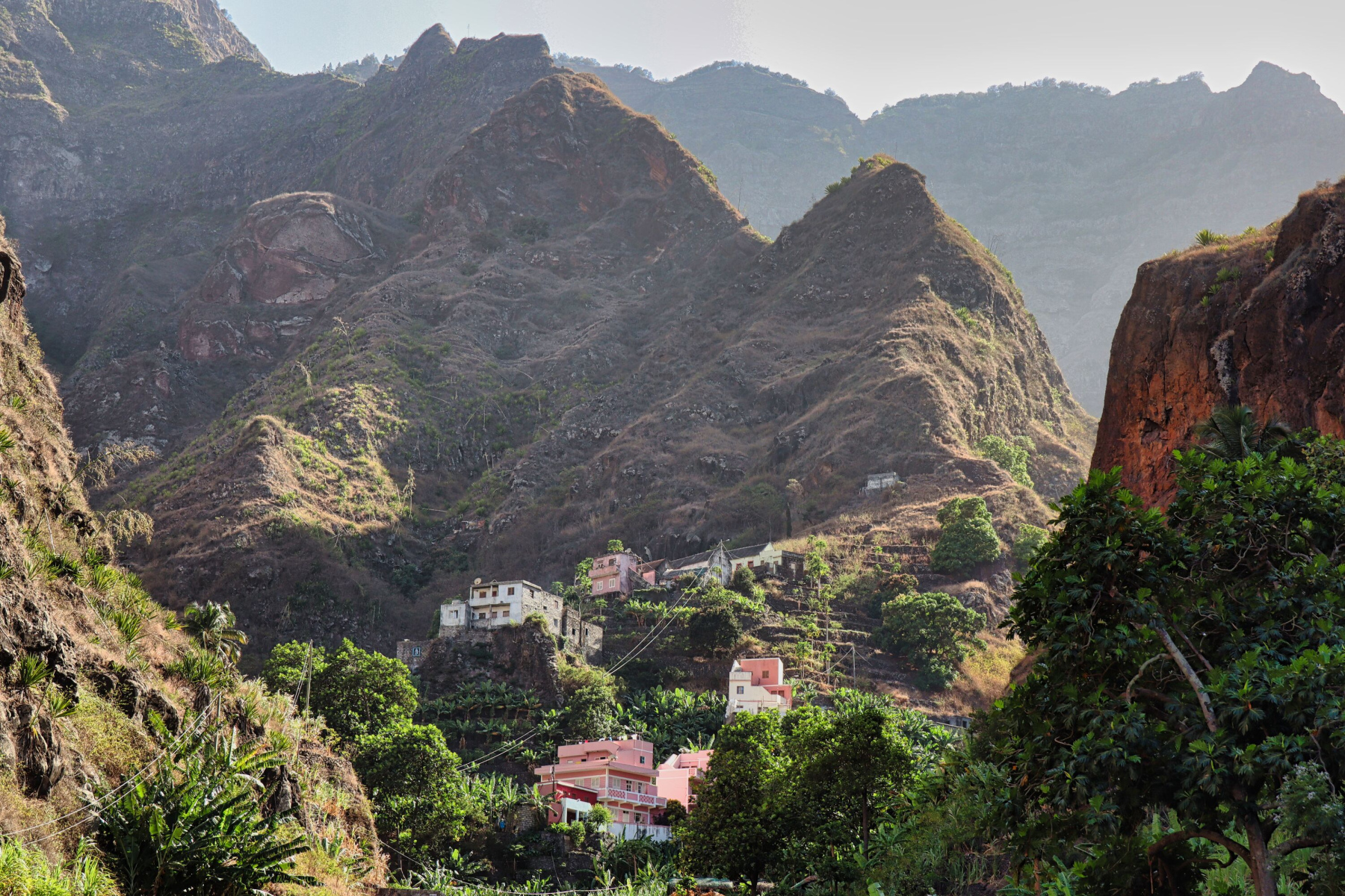 Da wir nicht nur der Kultur wegen, sondern auch um uns ein wenig die Beine zu vertreten hier heraus gefahren sind, folgen wir nun dem Vorschlag des Wanderführers und queren die staubtrockene Hochebene, einige Ziegengehöfte und den schmucklosen Ort Cabreiras um dann scharf links hinunter unvermittelt im tropischen Paradies zu landen. Hier wachsen Kokospalmen, Mangobäume, natürlich Bananen und andere exotische Früchte. Der Kontrast könnte stärker nicht sein.
