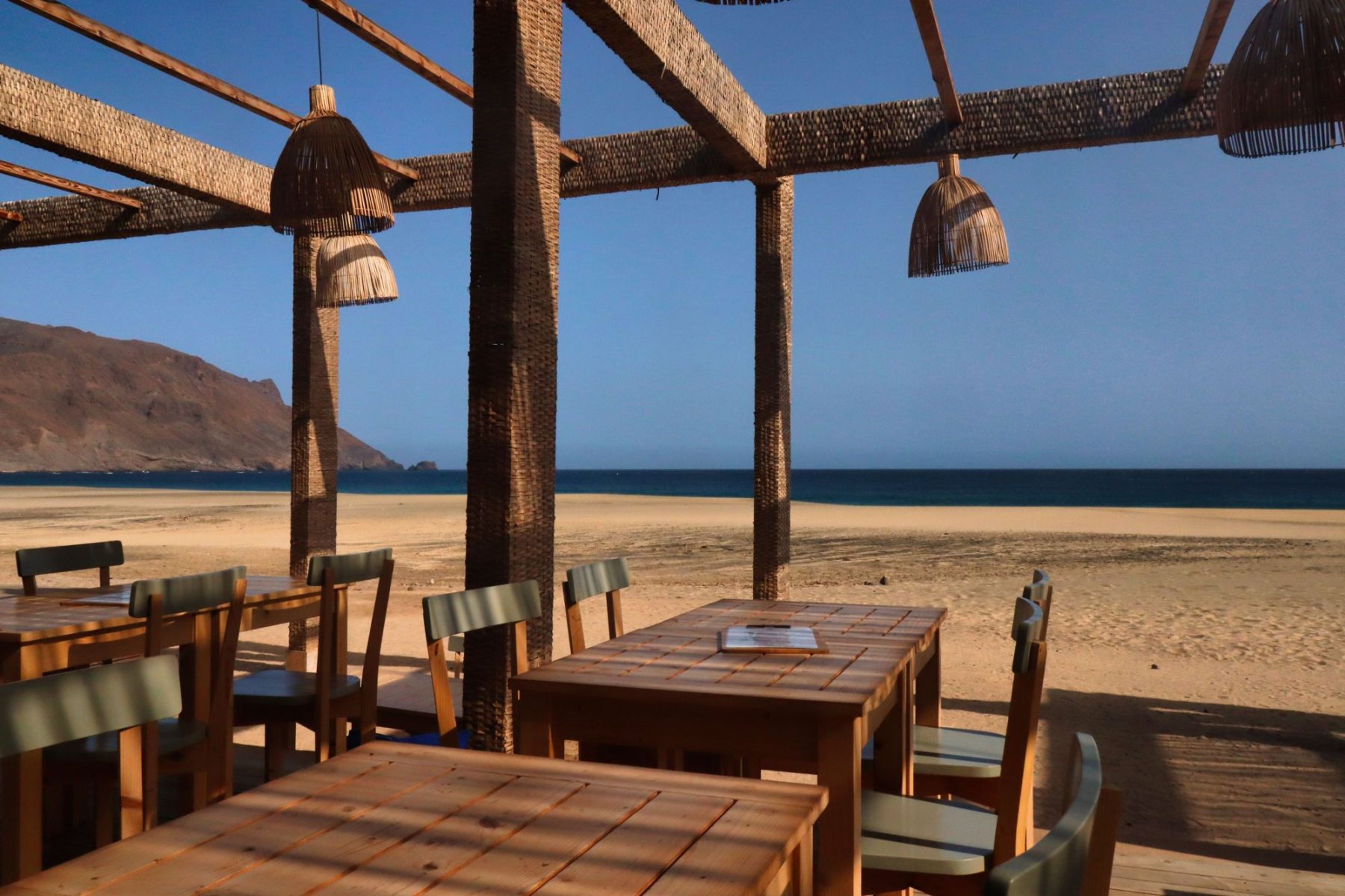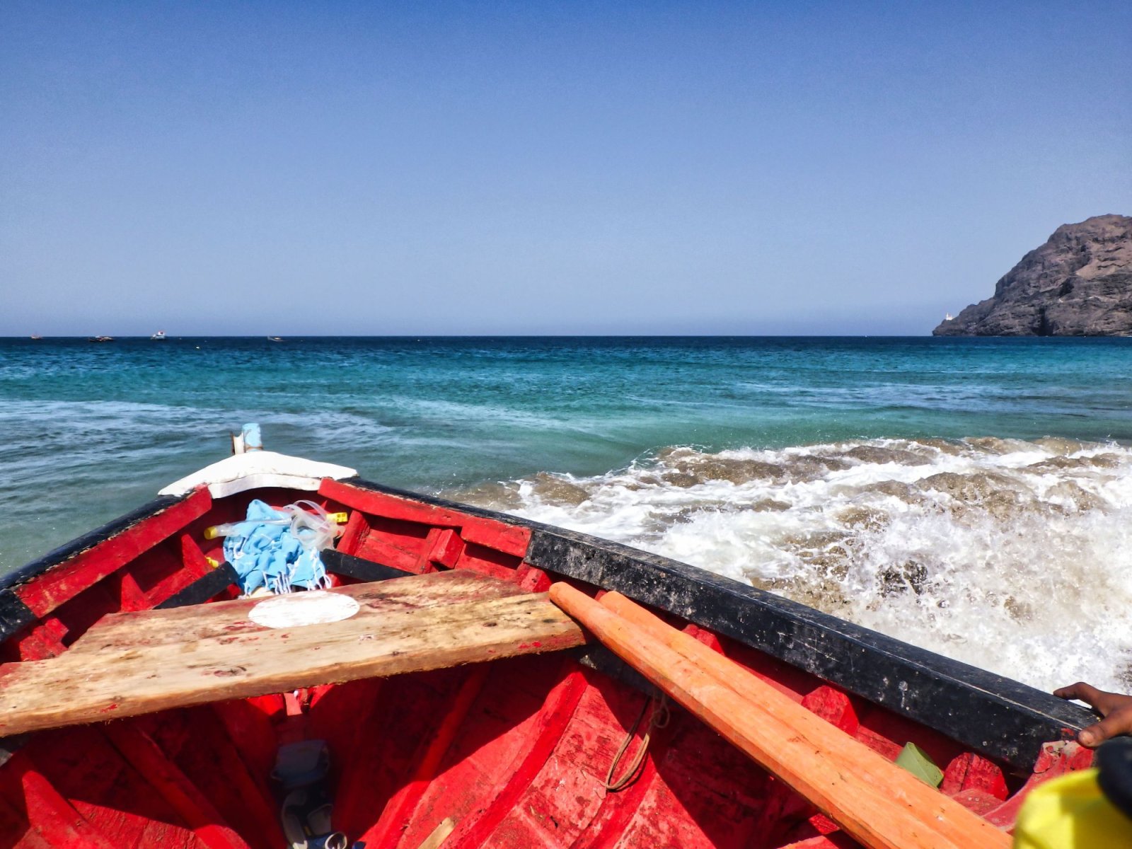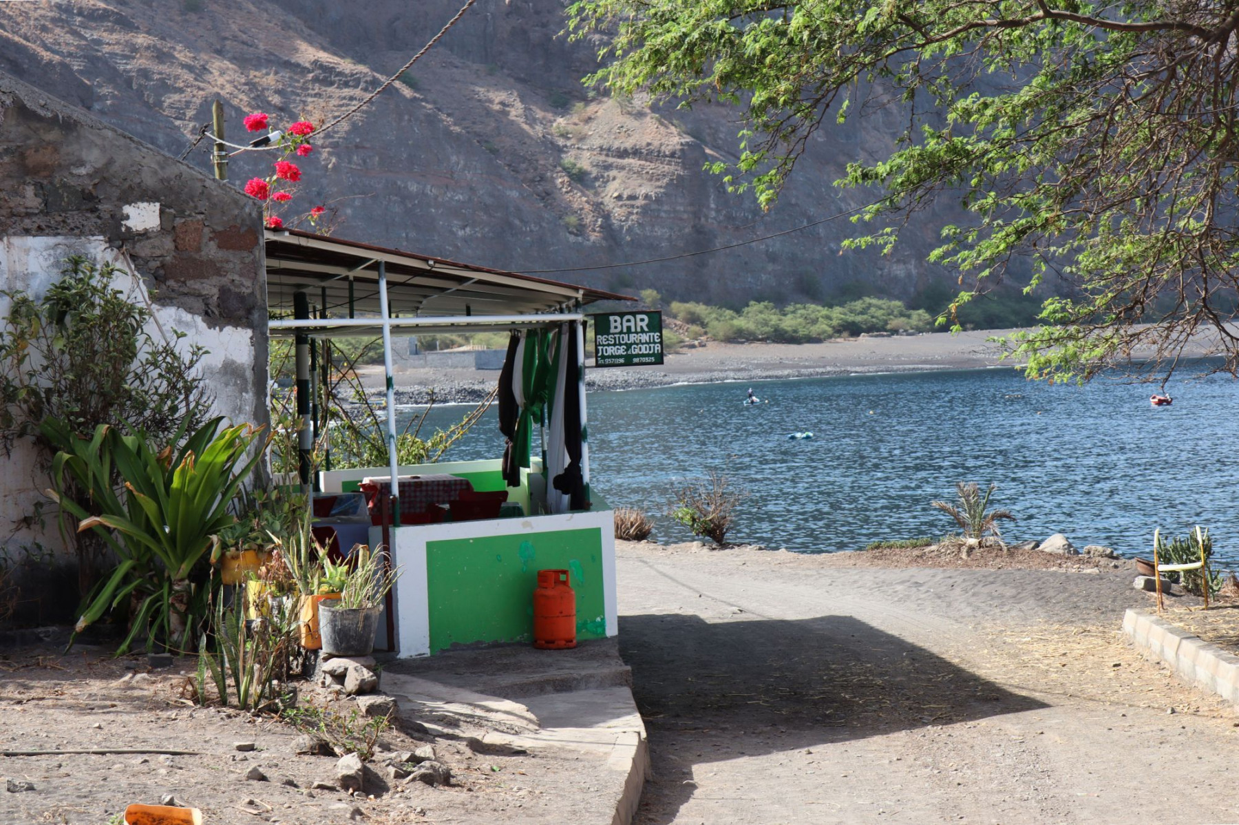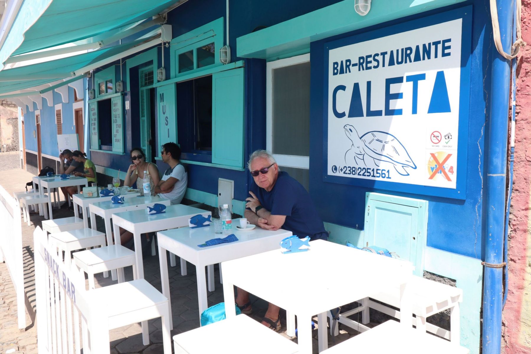 Mit Blick auf die Bucht, in der schon Kolumbus und Vasco da Gama ankerten essen wir unseren kapverdische Abschiedsfisch.