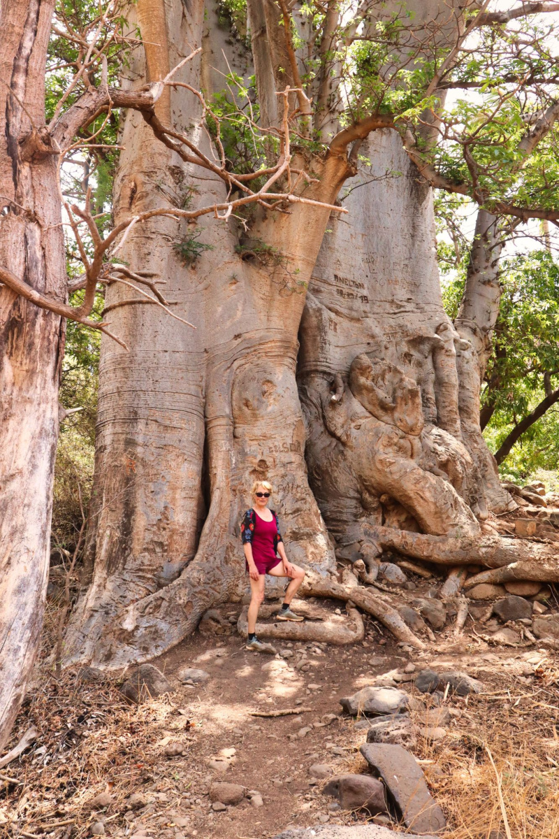 Entlang des Bachlaufes beobachten wir Eisvögel und kommen an einem uralten Baobab vorbei, ein Gigant seiner Art.